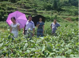 叶翠萍处长一行来到祯旺乡后,便马上步行前往祯旺乡的油茶、木耳、白茶、蔬菜、湖羊养殖等特色农业产业基地,实地了解乡里农业产业、特派员项目实施和农民增收等情况。叶翠萍处长每到一处,都认真与基地负责人和乡领导进行交谈,详细了解这些基地在苗木选购、种子选择、化肥使用、羊种引用、饲料调配、防虫防疫、市场销售、农民增收等方面的情况,对于这些特色基地的建设成效给予了高度的肯定,并提出相关建设性意见。