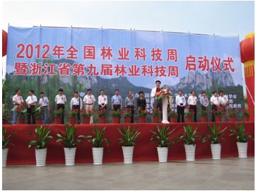 5月16日,全国林业科技周暨浙江省第九届林业科技周启动仪式在浦江启动。省政协主席乔传秀出席启动仪式并宣布启动,中国绿化基金会副主席兼秘书长、国家林业局原总工程师卓榕生、省林业厅厅长楼国华、金华市人民政府副市长蔡健出席并讲话,浦江县委书记戴建平致辞,国家林业局科技司巡视员张志达,省政协副秘书长郑新浦,中国林学会常务副秘书长李岩泉,浙江农林大学校长周国模,国家林业局华东林业规划调查设计院院长傅宾领,中国林科院副院长储富祥,省科协副主席隗斌贤等领导参加了活动。启动仪式由省林业厅副厅长吴鸿主持。