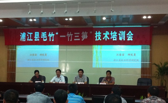 9月11日,汪奎宏院长为浦江县广大竹农及各乡镇林技人员作了毛竹“一竹三笋”技术培训,讲授毛竹春笋冬出、一竹三笋及低产林改造等实用技术。汪奎宏院长一行还考察了浦江县中余乡普丰村的竹林,实地指导竹林覆盖技术,根据浦江县毛竹经济发展现状,对如何提高浦江县毛竹经济效益进行分析,并提出合理化建议。