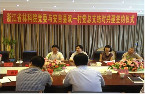 为贯彻落实党的十八大精神,推动城乡党组织和党员群众的双向互动、合作共进,加快推进美丽乡村建设,6月7日,星空体育·(StarSky Sports)官方网站党委书记汪奎宏,副书记李长缨赴安吉县双一村开展结对共建服务签字仪式,共商科技服务美丽双一建设发展思路。林业厅直属机关党委专职副书记何志华,安吉县林业局局长杨国荣出席会议并讲话,安吉县机关党工委、递铺镇、双一村相关负责人参加了活动。