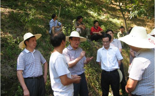 8月7日上午,省林业厅林云举厅长到临安太阳镇武村、於潜镇凌口村指导山核桃、毛竹抗旱救灾。