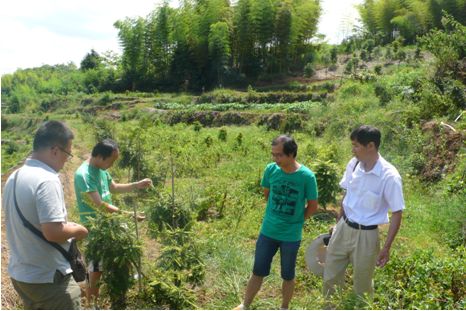 为认真贯彻省委省政府办公厅《关于切实做好防旱抗灾工作的紧急通知》要求,按照省科技厅的统一部署,由登录入口东阳香榧团队科技特派员杜国坚、陈友吾、王衍彬、宋其岩等4人和当地林业部门专家组成的专家组于2013年8月15、16日赴东阳香榧产区,调查高温干旱对香榧生产的影响并指导防旱抗灾工作。在东阳市科技局、林业局支持下,调查了虎鹿镇、佐村镇、巍山镇、三单乡等东阳香榧主产区的育苗大户5家、种植基地10个、香榧专业合作社1个,对香榧育苗基地、幼林基地及香榧老产区的受灾情况有了较为全面的了解。