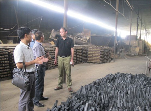 2014年7月25日,中央财政推广项目组成员陈顺伟研究员、庄晓伟副研究员和潘炘副研究员等调研了奉化尚田宏泰生物质能源有限公司,指出了该企业涡流分离器设计不合理之处,以及竹材加工剩余物竹屑需经过两次粉碎方能进入成型机致密成型导致能耗过大问题,提出了通过改进涡流分离塔,减少工作电机的数量,提高竹屑初分效率进而通过一次物料粉碎直接进入成型流程,降低企业能耗。生产线的改进意见得到了企业方的认可,并初步达成生产线改进和新厂房建设的合作意向。 (林工所)