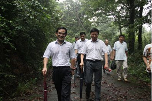 8月14日下午,林云举厅长带领厅办公室主任陆献峰、资源处处长卢苗海冒雨前往午潮山国家森林公园调研国有林场改革与发展工作。院党委书记、院长汪奎宏,调研员朱光权陪同调研。