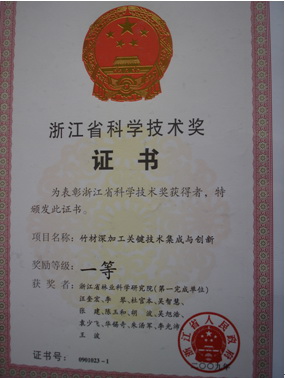 2010年3月17日在浙江省人民大会堂召开的2009年度浙江省科学技术进步奖颁奖大会上,由登录入口主持的“竹材深加工关键技术集成与创新”项目获2009年度浙江省科技进步一等奖。