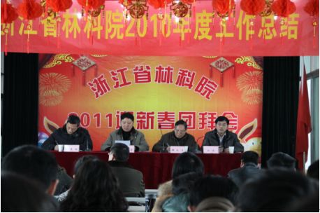 1月21日,院多功能厅福字高挂,张灯结彩,洋溢着浓浓的节日喜庆,院2010年度工作总结表彰及2011年新春团拜会隆重举行。林业厅科技处领导、院领导、在职职工、质检站全体职工参加了大会。